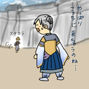 スタコラ呑気にこっちに来ている様子をボーッ(-口-)と静観していると