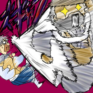 てん。「・・・・・・・ゼェゼェ・・・殺す気だ・・・このじーさん只者じゃない・・・!」