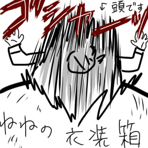↑ 開けにかかったらそんなオチで衣装箱に顔面ごと突っ込む図