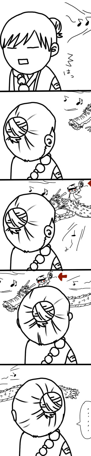 太鼓も気になるけど薬師と僧の頭に乗ってるちょんちょこりんが気になります。