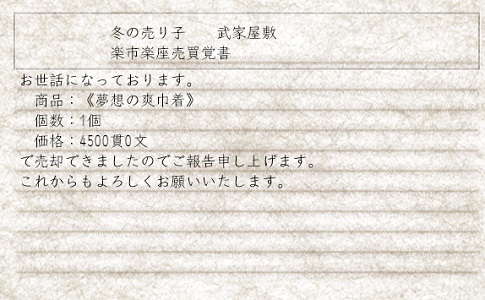 私が装備売るのってほんとに稀なのでご購入された方がいらっしゃるのってすごい奇跡と思ってしまいます。