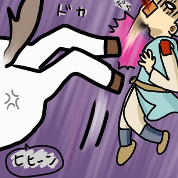 せっかくなので蹴り飛ばされた姿をネタに描き描き( ´_ゝ`)