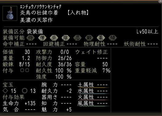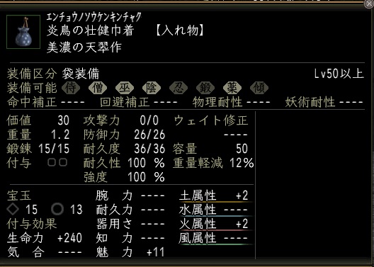 通常防御が20。現在装備してる袋が17。