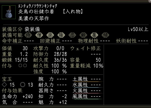 後衛職が持てる炎鳥の壮健巾着なる物を作ってみる。